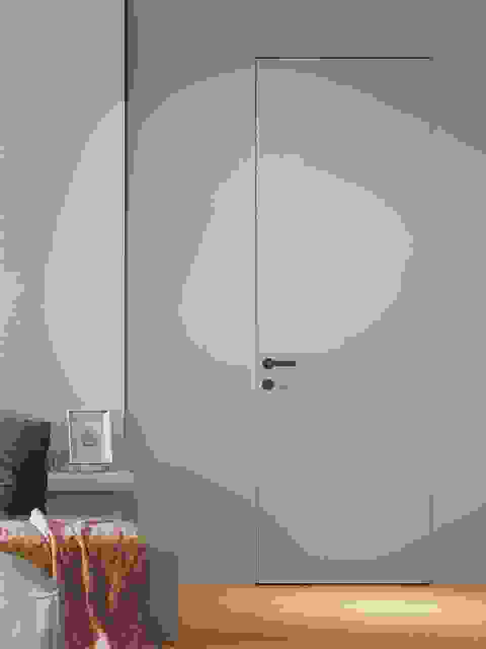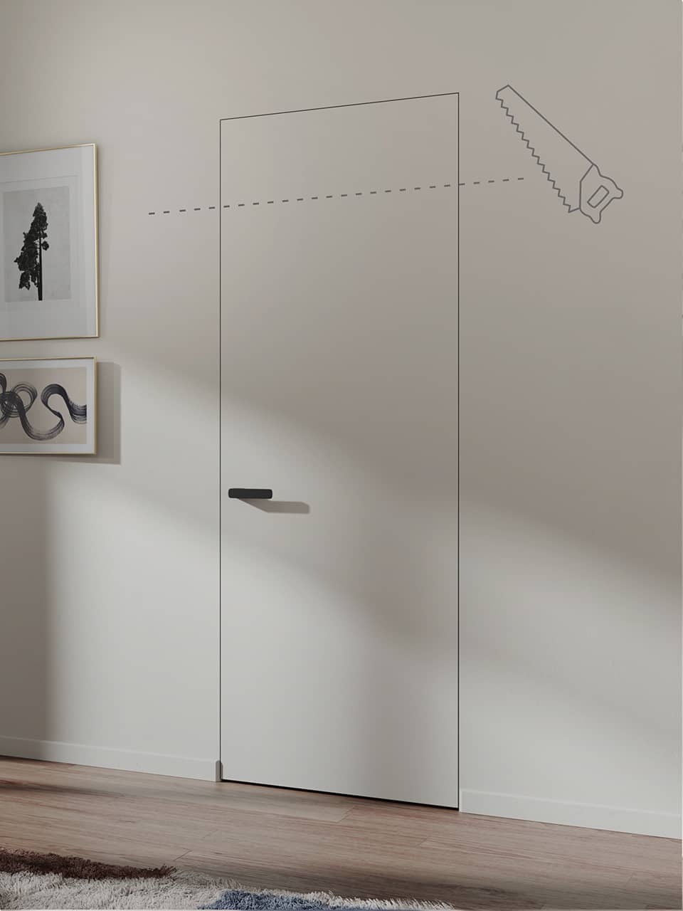 Гладкие минималистичные полотна и скрытые двери под отделку — являются одним из самых популярных решений в современном интерьере. Гладкие полотна максимально раскрывают красоту выбранной отделки и выступают отличным компаньоном для гладких стеновых панелей. Рисунок с панелей плавно переходит на полотно, растворяя его в пространстве.