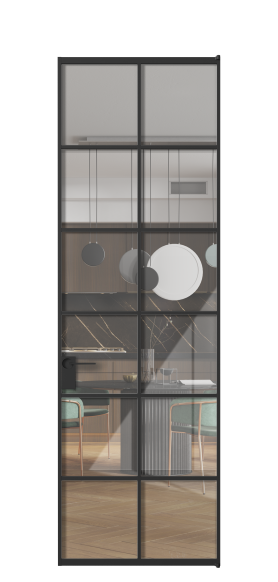 Минималистичный профиль повторяет форму профиля алюминиевых раздвижных перегородок Formato, что позволяет легко сочетать оба решения в одном пространстве.